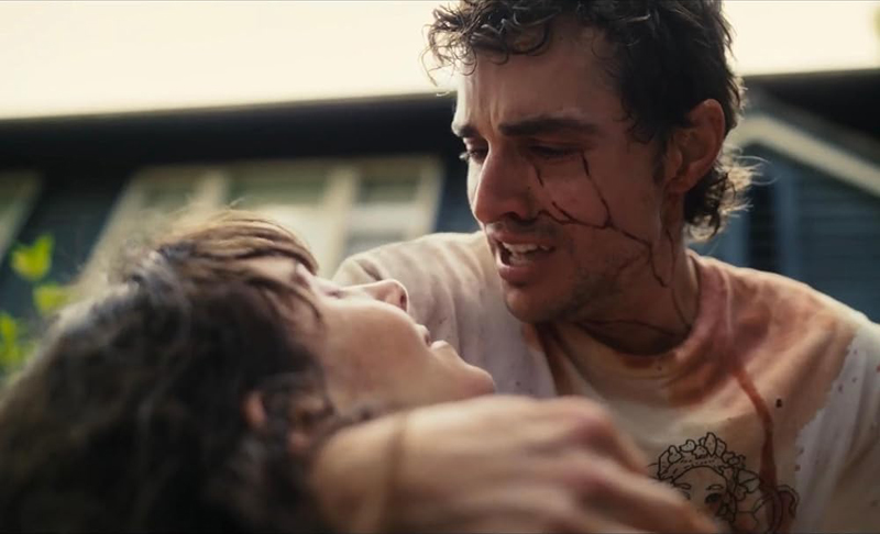 電影的一開始,我們就可以看到這對情侶遇到的問題,這對「怨偶」由現實生活中的夫妻檔演員愛莉森布里和戴夫法蘭科主演:無法承諾的男友、硬是做出改變的女友,導演麥可山克斯決定用戴夫法蘭科的角度切入敘事,而他也確實是比較好的對象,因為戴夫就是情感關係中無法進展的「問題」,這部分原因來自男主角的童年陰影,它很大部分囊括了電影前半段的驚悚橋段,事實上,害怕「血肉、肉體」的我,一直以為電影最嚇人的部分會在兩人開始「黏在一起」之後,後來發現,前半段讓我多次在飛機上戴著耳機瞇著眼看螢幕…