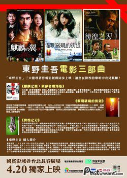 配合即將於4月20在台上映的《麒麟之翼:新參者劇場版》,改編自東野圭吾另外兩部人氣著作電影《黎明破曉的街道》、《徬徨之刃》也將在同一時間加入陣容,宛如「東野圭吾電影三部曲」!