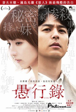 日本新銳導演石川慶首部電影長片《愚行錄》,改編自著名推理小說家貫井德郎的同名小說,邀來妻夫木聰、滿島光兩位日本影帝后,繼《惡人》之後再度合作,飾演一對各自內心藏有祕密的兄妹,當記者哥哥調查慘遭滅門殺害的田向一家時,竟發現看似單純的妹妹也與案情有所瓜葛。