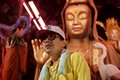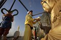 裝著義肢的牛角(高捷飾),總是開著一輛裝滿神明的貨櫃車,在台灣四處撿拾與營救被丟棄的各式神明,也同時存錢準備換裝新的義肢。