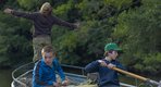 吃大虧的三人,遂鋌而走險潛入鄰居地窖偷食、硬闖坐擁絕景的夢幻別墅作樂,被逮到了,就狼狽開逃!而後一位和唐氏症女兒相依為命的女士向他們伸出援手,讓荒謬的夏天,多了一段安心休憩的片刻。綿延的草原,無盡的天空,三人依著船、順著河流晃蕩遠去。現在,只要有彼此,不怕天塌下來,他們要一起遠離大人佔領的荒謬之地...