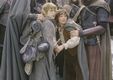 在《魔戒二部曲:雙城奇謀》中,除了故事又呈多線的發展,因為在波羅莫被強獸人殺死之後,兩個哈比族人皮聘和梅里也被強獸人綁架,因為強獸人接受到白袍巫師薩魯曼的指示,找到哈比族人奪回魔戒,但是真正擁有魔戒的佛羅多卻和另外一個生死至交的哈比族人山姆繼續進行摧毀魔戒的艱鉅任務。