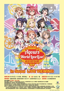 於2019年3月24日(日)上海·上海國家會展中心虹館EH,2019年4月7日(日)台北·台北國際會議中心(TICC)和2019年4月21日(日)首爾·高麗大學化汀體育館舉辦的Aqours全長演唱會的首次亞洲巡演《LOVE LIVE! SUNSHINE!! Aqours World LoveLive! ASIA TOUR 2019》已確定向日本全國及海外的電影院進行現場直播。