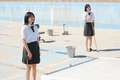 高二的暑假,未來和心因為缺課,被體育老師山本要求在暑假期間到校打掃游泳池。面對著一滴水也沒有,卻堆積了無盡沙子的泳池,她們雖然不情願,卻為了不被死當,拿起掃具在豔陽下開始打掃工作。不知為何,游泳社的千鶴以及游泳社的前社長由依學姐也加入了打掃的行列。就這樣,四個女孩各自懷抱著不同的煩惱,她們漫不經心地從校園社團、戀愛心事一路聊到美妝與時尚,各種對生活與未來的期待和迷惘,讓乏味的打掃工作、乾涸的泳池增添了意想不到的青春色彩。
