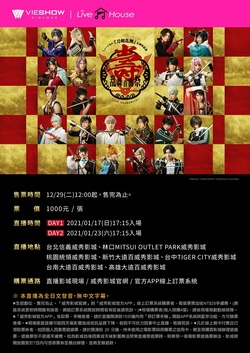 出陣!日本人氣節目【音樂劇《刀劍亂舞》五週年紀念 壽 亂舞音曲祭】,自2021年1月9日起,將於Tokyo Garden Theater 進行為期兩週的紀念活動演出,為響應此別具意義的重要時刻,威秀影城也將為海外的審神者們,同步進行其中兩場精彩的零秒差獨家直播!