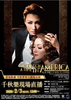 寶塚歌劇 雪組於2020年2月3日(一)於寶塚大劇場(兵庫縣)上演的音樂劇『ONCE UPON A TIME IN AMERICA(四海兄弟)』千秋樂,將舉行現場直播。