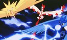 吉拉魯塔一發現火燄鳥就撒下捕捉器。把火燄鳥抓了起來!話說小智一行人也被抓入飛行器中,他們發現除了雷電鳥外,火燄鳥也被抓到.芙魯拉發現飛行器內有一神秘的石板,上面記載的古文字談到火之神,雷之神,冰之神的事。