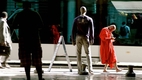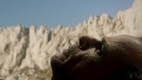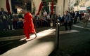 相遇前,他於鏡頭下化為靜物,觀想凝望著觀眾,呼吸聲息安靜且規律。下一個鏡頭,他的側臉與山巒、海景融為一體;而披著紅色僧袍的玄奘,以一個細微紅點緩緩地在遠處地平線升起。兩者隨而相會於馬賽鬧區,以同樣步履與節奏尾隨著,亦步亦趨。
