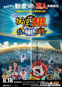 《電影版妖怪手錶:飛天巨鯨與兩個世界的大冒險喵!》結合真人演員玩穿越梗,在日本口碑發酵,影迷表示現實與動畫完美結合零違和感,加入懸疑元素讓電影張力倍增,讓大人、小孩都沉浸其中。