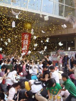 2008/07/29 為讓影迷體驗即將在8月1日上映的溫馨喜劇《有錢真好》,片中三位女主角—黛安基頓、皇后拉蒂法,與「阿湯嫂」凱蒂荷姆斯—的瘋狂搶錢樂,片商特舉辦「有錢真好全民抗漲 灑真鈔搶錢」的宣傳活動