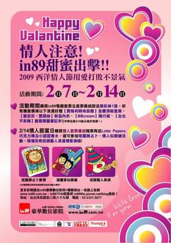 2009/02/12 凡於活動期間至in89豪華數位影院購票即贈送摸彩券,於2/16後抽出中獎名單,你將有機會入住【寶格利時尚旅館頂級套房】一晚或者是送給女友一套sexy的【黛安芬】內衣