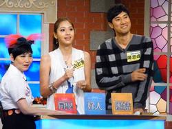 2010/08/09 超人氣名模白歆惠和電影中飾演她老公的陳恩峰,一起上小燕姐主持的《百萬小學堂》,宣傳兩人合作的第一部電影《魚狗》。
