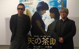 2015/10/27 台灣上映 由鬼才導演SABU與北野武工作室聯手打造的《天之茶助》,24日為台北場首映,導演SABU及製片市山尚三也特地北上與影迷見面,對於影迷的問題有問必答,片商也特別準備了片中主角松山研一戴的天使翅膀,讓兩位幸運的影迷上台和SABU導演及市山尚三製片合照。