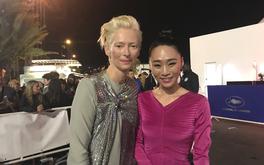2019/05/16 台灣上映 《灼人秘密》導演趙德胤、女主角吳可熙昨晚出席坎城影展官方晚宴,捕獲野生古一大師蒂妲史雲頓,她主動跟吳可熙攀談,她表示自己聽過《灼人秘密》也很期待這部片。