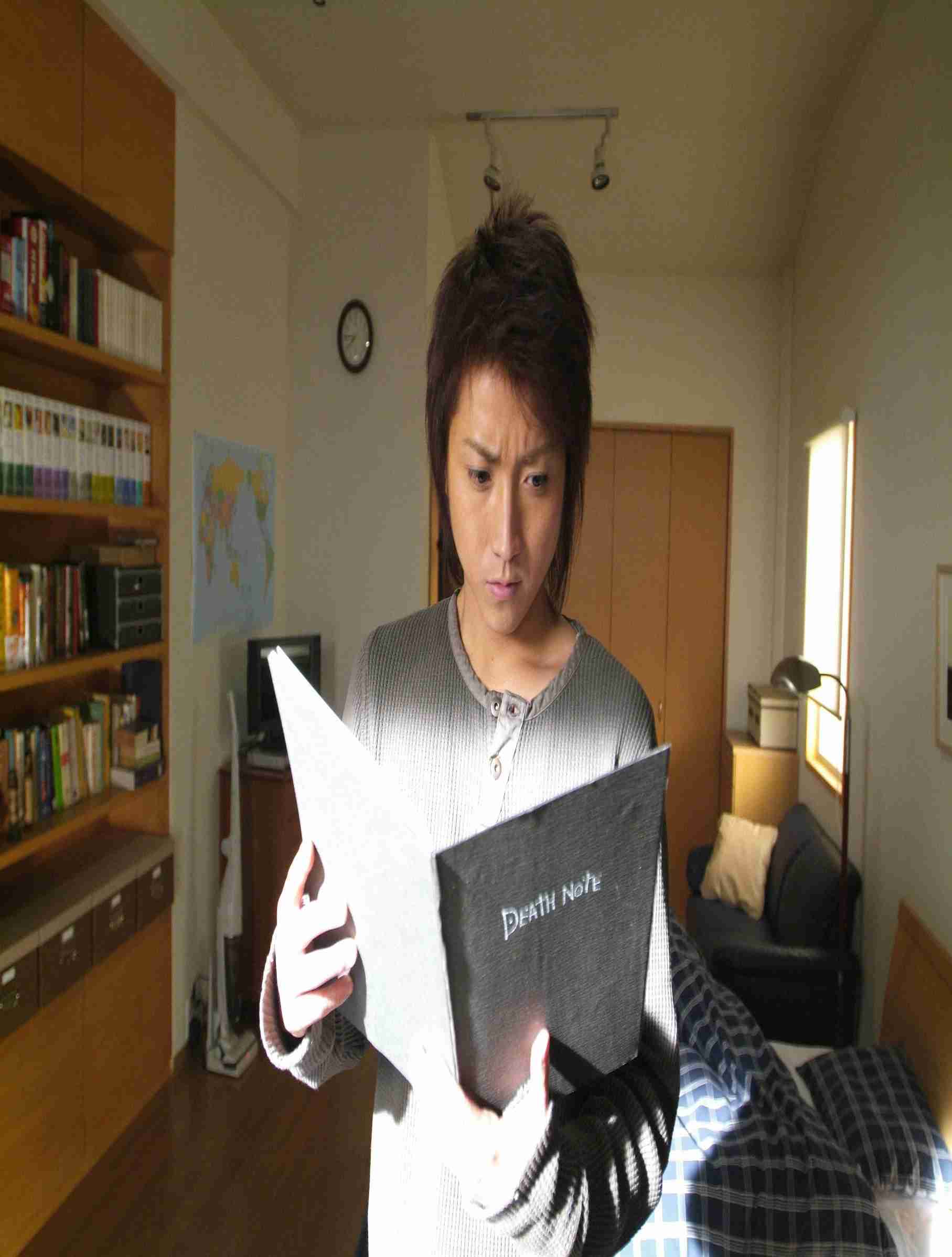 《死亡筆記本》由藤元龍也、松山建一、瀨戶朝香主演,概念就是凡是名字被寫入死亡筆記本上的人就會死。故事是說死神路克為了排解無聊,在人間界丟下一本《死亡筆記本》。成績全校最優的高材生,夜神月,撿到了這本《死亡筆記本》。一開始,他也是半信半疑,沒想到真的可以用這本筆記本來殺人。夜神月決定利用筆記本創造自己心目中的理想新世界,將所有邪惡的罪犯都清除。在殺死罪犯的同時,夜神月也測試出筆記本的使用方式,一些連死神都不知道的方式。而罪犯離奇死亡的案件層出不窮,警方束手無策,只好邀請神秘的破案天才L一起參與。從不以真面目示人的L,透過電視宣告,絕對會逮捕兇手。這個行為,同時也激怒了夜神月……。L與夜神月間的懸疑鬥智對決,就此開始,兩人間令人屏息的頭腦戰,將帶給台灣觀眾意想不到的全新震撼!
