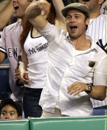 當全民在慶賀阿民17勝與「台灣國家代表隊-洋基」獲勝時,場邊也有一個人與大家在振臂歡呼著,他正是好萊塢的性感巨星布萊德彼特帶著養子麥道斯前來球場看球。