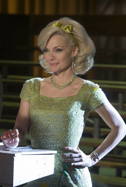這回蜜雪兒菲佛在《髮膠明星夢》中飾演一位一九六0年代地方小電視台的黑心製作人,用盡卑鄙下流的手段排擠真正有天分的參賽者,全力護航自己的寶貝女兒在歌舞選秀節目中脫穎而出。表面上看來,蜜雪兒菲佛似乎只是飾演徒具美色的賤女人,其實如何「故意演得拙劣」而又有深度?才是真正演技實力的考驗。而且這是蜜雪兒菲佛繼十多年前的《一曲相思情未了》之後,首度在大銀幕上展露歌喉,還要和一群年輕渾身是勁的新秀尬舞,豈能不敬佩乎!?