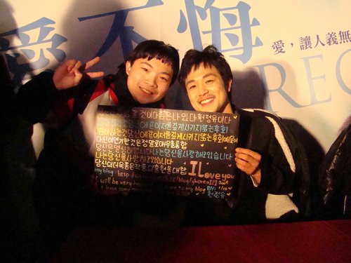 將近晚間10點,台北溫度只剩下8度,但是台北市著名的同志朝聖聖地-紅樓廣場,卻聚集了超過200位熱情的影迷,將現場擠的水洩不通。《愛,不悔》兩位明星李英勳與趙成源看到麼多影迷捧場相當開心,不但與大家一同玩遊戲,影迷要求拍照、握手、簽名都一一答應,親切的態度讓影迷們開心不已。活動原本進行到10點半結束,但影迷們大聲呼喊:「不要走!」讓兩位明星又繼續留下來與影迷合影簽名,一直到11點半,兩位韓國明星才依依不捨的離開紅樓廣場。