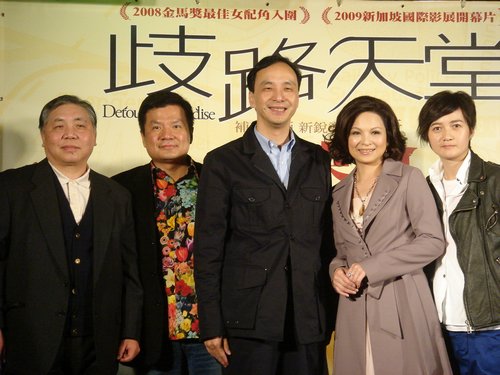 台灣首部描述外勞的電影《歧路天堂》在台北信義威秀影城舉辦首映會,導演李奇帶領片中的兩位台灣女星楊貴媚和吳立琪一同出席
