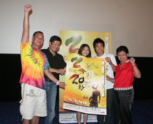 劇情片電影《2分20秒》於昨日在高雄威秀影城舉辦賑災義演,導演薛少軒率領主要演員黃仲崑、薛宇廷、伊娜出席,高雄縣新聞處副處長王淑芬更應邀出席。