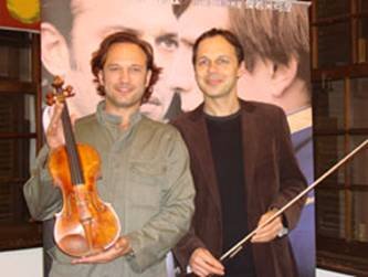 《明天的黎明》導演丹尼斯德古午抵台,與前一天抵達的演員文森培瑞茲一同出席電影記者會。正於故宮舉辦「絕色名琴」展覽的台灣奇美博物館,慨然出借價值上億的「維爾特」小提琴
