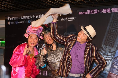 昨晚於今日秀泰影城的《三槍拍案驚奇》電影首映活動,由許傑輝所扮演真情康永,跟九孔的所扮演小瀋陽以及郭子乾的趙本山,開始了熱鬧的電影首映活動。