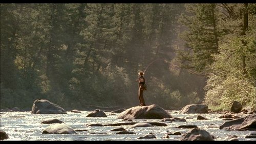 《大河戀》片中最令人印象深刻的,就是父子在河中「蠅釣鱒魚」的畫面,蠅釣(fly fishing)是一種在釣鉤上繫羽毛和彩線,偽裝成蠅蟲,以誘魚上釣的釣魚法,魚線拋出的角度要落在十點鐘到二點鐘方向範圍內,而且要以四拍子節奏表現只。若釣者技巧熟練,其揮桿的動作是非常另人賞心悅目的。電影中「蠅釣鱒魚」的鏡頭正是在黃石公園的黃石河中所拍攝的,畫面美不勝收。