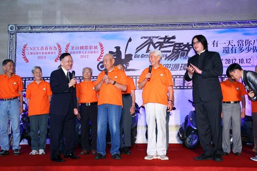 盛竹如請導演華天灝發表入圍釜山影展的心情,華天灝說:「我覺得這是一部從台灣出發,全世界的人都看得懂的紀錄片,很希望能藉由在釜山的放映,讓不老騎士的精神感動更多人。」隨後盛竹如特別授旗給華天灝,預祝他釜山行旗開得勝,抱得大獎而歸。
