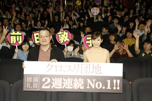前田敦子與導演中田秀夫於上週六(6/1)連跑日本多家戲院,感謝影迷對《黑百合公寓》的熱烈支持,讓本片成為今年首部雙週票房冠軍的日本真人電影。只見活動現場坐無虛席,甚至有粉絲拿著應援板到場支持,也讓前田敦子感動得眼泛淚光直呼感謝,更不時把手放在鼻前強忍即將落下的淚水。此外,她透露電影上映之後,曾與女性友人偷偷跑去戲院,邊看電影邊觀察觀眾的反應,尤其看到影廳內滿滿的觀眾,更是讓她開心不已。而前田在上月中為宣傳本片造訪台灣,更是讓她留下難以忘懷的好印象,並對所到之處都有粉絲的場面感到驚喜。雖然只停留短短16小時,但此次的台灣行也好似她大飽口福的食慾之旅。對此前田表示:「我當晚連吃三人份的晚餐量,真是超開心!」其實前田素有「大胃王」稱號,對此導演也逗趣調侃她:「她就像百米賽跑,從海蜇皮開始,連續吃到最後一道杏仁豆腐,似乎都沒有想要停止的感覺。」