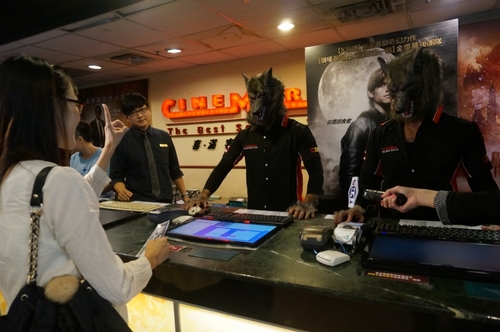 狼人出沒台北戲院!?今日許多觀眾到東區影城看電影,可能會受到驚嚇,因為影城竟然出現「狼人售票員」。