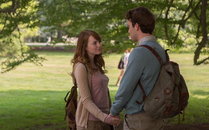 在《愛情失控點》裡,艾瑪史東飾演冰雪聰明的女大生,與英國小生傑米布萊克利(Jamie Blackley)飾演的高富帥男友出雙入對,總是校園裡的焦點,沒想到一位頗負盛名的哲學系教授轉來任教,事情卻出現變化。這樣的劇情恰巧與艾瑪真實生活相似,她與安德魯是好萊塢的金童玉女,兩人的動態皆是眾人矚目的焦點,才在不久前渡過安德魯偷吃風暴,卻在《愛》一片上映前後,再次分開。