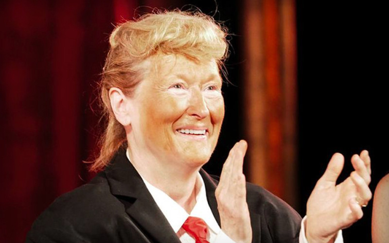在《走音天后》唱歌大走音的奧斯卡影后梅莉史翠普,「什麼都會演、什麼都難不倒她」的演技爐火純青,日前更在紐約市舉行的「莎士比亞公園劇場晚會」中,反串裝扮成唐納川普,打上了川普經典的紅領帶、秀出蓬鬆頭髮!