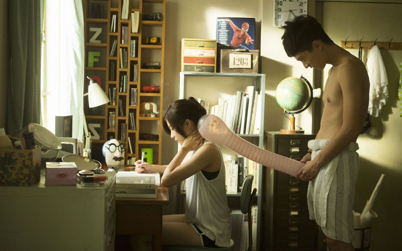 原版的MV中搶先曝光石知田跟洪晨穎在《極樂宿舍》中,有火熱的滾床戲,這場床戲同時是兩人的螢幕床戲初體驗,洪晨穎坦言拍攝前很緊張,還跟石知田先喝點酒醞釀情緒再拍攝,有點微醺的感覺讓情感流瀉與表演更順暢,但這場戲從凌晨一點拍到五點,二個都表示吻到後來只覺得是兩片嘴唇互相碰觸,完全沒有任何害羞心動的感覺,只想趕快結束收工趕快回家睡覺。