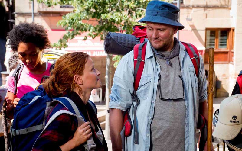 IBDMW_449__GMC3232有趣的是,外型姣好的卡羅莉妮舒赫,因為長得頗正,走「聖雅各之路」反而並不順遂,總會吸引男旅者注目,甚至找她搭訕騷擾,讓她一路上忙著反擊。這也使她初次看到胖胖的哈沛(大衛史崔索 飾)便充滿敵意,以為他是「豬哥」,直到看見許多遊客頻頻對他致意,這才驚覺原來「大人物」就在身旁。倒是哈沛對她慢半拍的反應笑得合不攏嘴,還虧她:「妳是記者怎麼什麼都不知道?」,兩人也從鬥嘴開始,變成聖雅各之路上相互砥礪的好夥伴,甚至一起睡青年旅社。