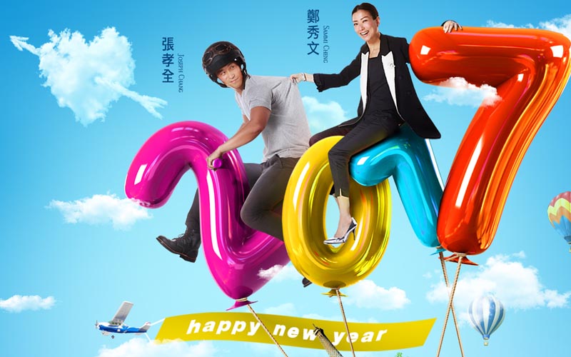 將在2017年情人節檔期全台上映的《合約男女》,也讓領銜主演的鄭秀文、張孝全「一騎上雲端」,兩人騎乘有2017形狀的造型氣球飄上天,攜手祝賀台灣的影迷們新年快樂!