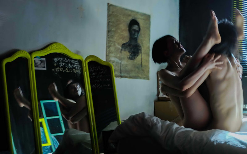 林微弋片中有多場令人深刻的床戲,一開始她按一般床戲「正常演出」,卻不料導演陳宏一直喊卡,要求她得因應片中舞蹈家角色,發展出極具力與美的做愛姿勢。她只得連跳芭蕾的身段都給用上,一雙玉腿像盪鞦韆般、倒掛男主角林哲熹肩膀上的做愛戲,讓人嘆為觀止,這場做愛戲還以三折試衣鏡、折射出了各種姿勢,加上直抵雲霄的浪吟聲,一開場就令人振奮。有趣的是,日前她將自己的裸體劇照貼在臉書上,每個朋友竟都跟她說超想看《自畫像》,反讓她有些不好意思。
