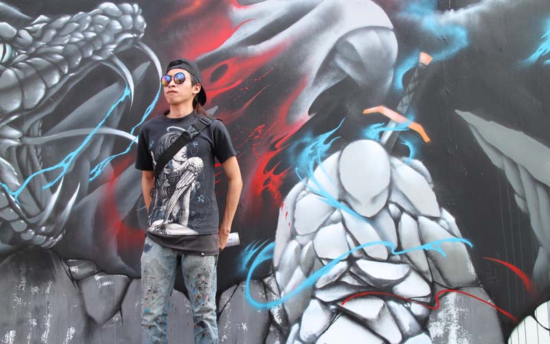 留學日本擁有深厚美術基礎,以破牆而出的暗黑沃帝根王與施法操控巨蟒的魔法師做正邪勢力的拉扯。石中劍則增提供與民眾的互動創意,意寓著拔出石中劍,任何人都可以是出身街頭的王者。