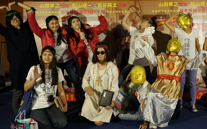 台灣片商與CHOCO TV聯合舉辦《聖☆哥傳》「與神看片」首映會,特地號召百位精心打扮成「耶穌」、「佛祖」的熱情粉絲共襄盛舉。