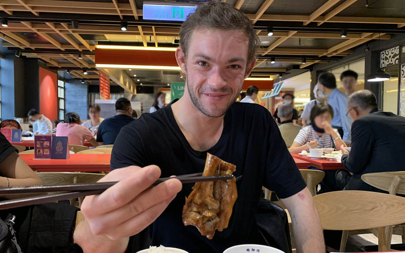 獲邀參與金馬國際影展的《野放動物》(Sauvage)法國男星費力克斯馬利托(Félix Maritaud)17日抵台,受邀參加陳敏郎導演新片《給我愛》(暫名)殺青酒,愛吃重口味的他,看到整桌豐盛熱炒興奮到不行,現場更有卡拉OK助興。