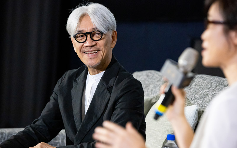 講座由音樂創作人雷光夏主持,親自回答台灣粉絲對他的提問。睽違二十餘年再訪台灣的坂本先生,一出場不但先以中文親切地向現場觀眾打招呼,還表示看過不少台灣電影。當被問到當年在大島渚電影《俘虜》中和大衛鮑伊演出的「世紀之吻」以及貝托魯奇的《末代皇帝》的演出對許多粉絲的影響,坂本表示,自己只是因為很景仰這兩部電影的導演,想和他們合作,才答應參與演出;自己其實並不想當演員。不過,如果侯孝賢導演想「逼」他在侯導電影中「尬」一角,他也是會答應的啦!惹的現場哄堂大笑。坂本也表示,自己非常喜歡林強製作的電影音樂,如果能夠的話,也很希望能夠跟林強有合作的機會。