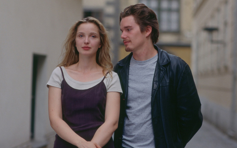 1995年《愛在黎明破曉時》描述兩個陌生年輕人傑西(伊森霍克 飾演)跟席琳(茱莉蝶兒 飾演)在火車上邂逅後同遊維也納,途中閒聊對話不斷,交換彼此對人生及愛情的看法,兩人分手時並未留下聯繫方式,只相約半年後同一地點相聚;九年後的《愛在日落巴黎時》描述傑西跟席琳在巴黎書店重逢,歲月在他們身上留下痕跡,雙方都顯得飽經世故,分享九年間彼此的人生經歷及體悟。