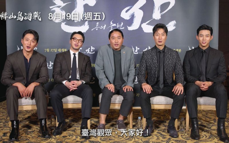 《韓山島海戰》導演金漢珉、主演朴海日、卞約漢、玉澤演、金成圭,也特地錄製影片向臺灣觀眾問好,他們表示:「本作將展現『李舜臣』的鶴翼陣戰術、徹底考證後的龜船模樣,以及海戰中充滿魄力和華麗的動作場面,展現兩國之間的緊張氣氛,為了能寫實地將這段歷史呈現給各位,演員們和工作人員都努力研究進行拍攝,希望大家都能期待本作,很期待能在海上與觀眾們見面,請大家多多支持《韓山島海戰》!」年度戰爭動作鉅獻《韓山島海戰》本週五8月19日在臺上映!