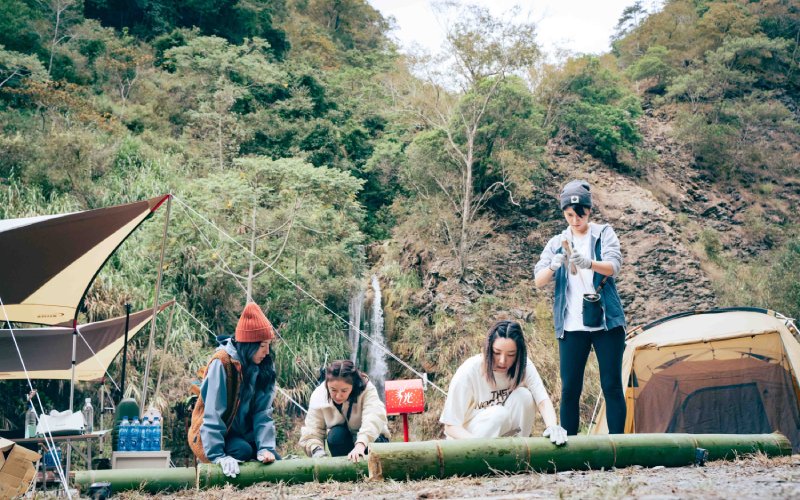 林心如談起露營過程中,需要完成砍竹子並做竹筒飯的任務,她表示:「竹子有大有小,有一次的竹子特別大,一刀一刀去鋸出竹筒,真的很難,但又得做不然沒飯吃。」楊謹華、郭雪芙則是帶著越鋸越苦的表情,楊謹華笑說不想再看到竹筒飯,郭雪芙坦言當下心情是吃個飯,真不簡單。江宜蓉談起上山採竹子的過程:「是全新的體驗,竹林非常漂亮,是很窄的小道,像是去探險,蠻好玩。」謝瓊煖則透露自己很喜歡去砍竹子,因為可以再去探索周遭的環境。