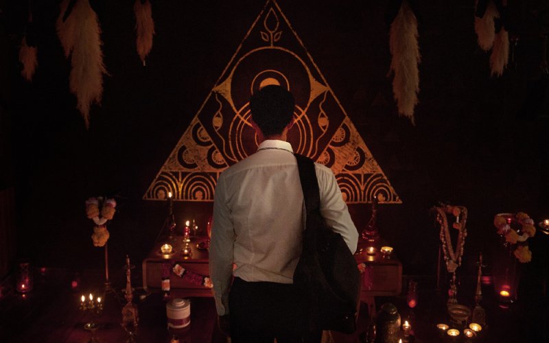 電影《邪厄》充滿許多詭異物品及邪教的祭祀神壇與象徵邪教的恐怖印記,男主角蘇格拉瓦卡那諾Sukollawat Kanaros日前接受訪問時表示自己最害怕的是邪教的神祕三角圖騰,他說:「拍攝現場到處都是這個三角圖騰,連我女兒、以及我自己身上還有這個標誌,更可怕的是出租去的房子裡到處都是以血跡塗成的三角邪教圖騰,拍攝時真的覺得太恐怖了!」在電影中散播三角圖騰邪教力量的教母,由泰國資深女星彭帕克西里古爾Penpak Sirikul飾演,她則透露在拍攝電影時,最害怕的就是詭異的木偶,拍攝現場甚至沒有人敢去觸碰它。