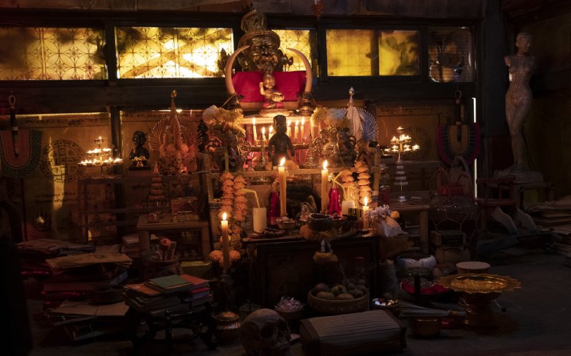在電影因遇到疫情停拍的數個月期間,30幾尊道具就放置在製作公司地下室裡。某天有位體質敏感的工作人員一早抵達公司,就聽到地下室傳來小朋友嘻鬧聲,她也心裡有數,淡定地跟靈體對話:「等下有人要來公司上班,不要嚇到人家,你們在這邊玩完後,就去別的地方玩。」說也奇怪的是,小孩的嬉鬧聲不久後就停止了,後來也請泰國宗教顧問來勘查,顧問一看發現地下室的古曼童果然已有靈體進駐,於是他便幫忙妥善處理,事情才告一段落。