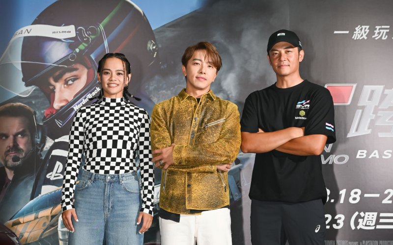 今天同樣也上賽道飆速的還有藝人坤達與吱吱,兩人分別坐上安全車上場感受G力的震撼,坤達於記者會時笑道:「我在車上直線加速時試著想要直播,結果居然默默留下兩行淚,我覺得應該不是害怕啦,是冷氣開太強了!這真的是很特別的體驗,從來沒有感受過這樣的速度感,令人更期待電影中將會怎麼呈現。」