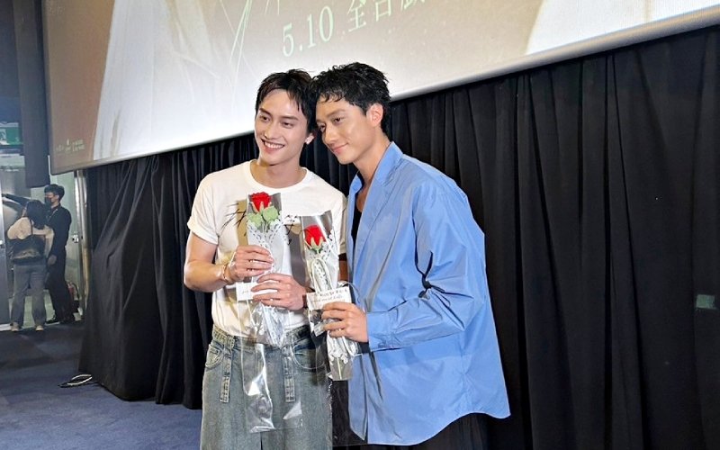 范少勳周末扛起宣傳重任,自掏腰包突襲戲院二刷,他表示:「二刷後更相信兩位主角的相遇,也更投入劇情!」他帶著俊謙的人形立牌跑QA,還在101前拍照,即便分開也沒忘記對方。
