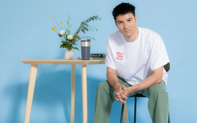 他另以蠟筆作畫,設計「走自己的路TEE」透過粗獷帶點童趣感的筆觸,加上mini matters品牌的小花標誌,希望用孩子、夢想的概念,強調與自然共生的狀態下,人人都能走出自己的道路。愛好環保的鳳小岳本身就是保溫杯擁護者,他認為夏天炎熱是外出必備良品,也因此靈機一動在杯身上設計了「毛筆祈福圈」的符號,他解釋:「毛筆代表智慧的象徵,也有傳統、創作的精神,我用祈福圈的形式,象徵完整的感覺,也送給所有使用者。」