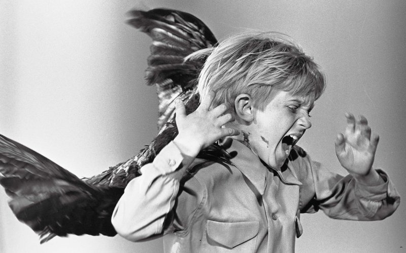 為了追求畫面的真實感,《鳥》的拍片現場動用超過28,000隻真實鳥禽,電影中多幕鳥群攻擊小鎮的動物反撲場面,成功營造出令人窒息的戰慄氣氛。將日常熟悉的無害鳥禽,塑造成讓觀眾懼怕的大銀幕噩夢,突破當年特效技術,更受到奧斯卡最佳視覺效果提名肯定。
