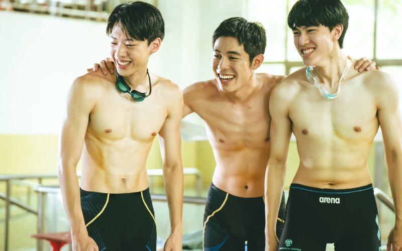 劇中3帥詹懷雲、黃信赫、金東昱不僅在「有交過女朋友嗎」、「怎麼追女生」的戀愛話題上互虧,更曝光3人穿緊身泳褲在游泳池邊暖身、展露結實身材的養眼畫面。